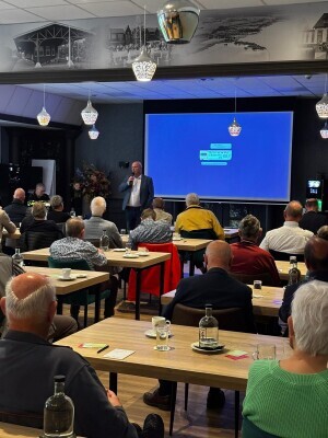 Ter afsluiting van de bijeenkomst voor gepensioneerden ging de vice-voorzitter van de BVPP, Gerard van Rijn, in op de actuele ontwikkelingen bij PostNL en bij de BVPP.